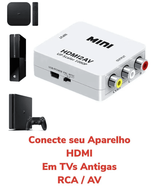 Podendo ser utilizado em equipamentos modernos com conexão hdmi para conectar a tv's antigas com conexão AV